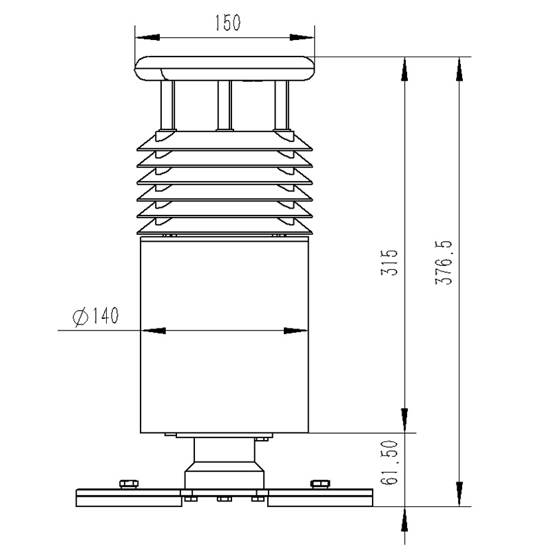 該設備采用五要素一體式傳感器,可對風速、風向、空氣溫度、濕度、大氣壓力等氣象要素進行實時觀測,傳感器外殼采用進口ABS材質,更有效對抗鹽霧等環境,防護等級達到IP65以上。